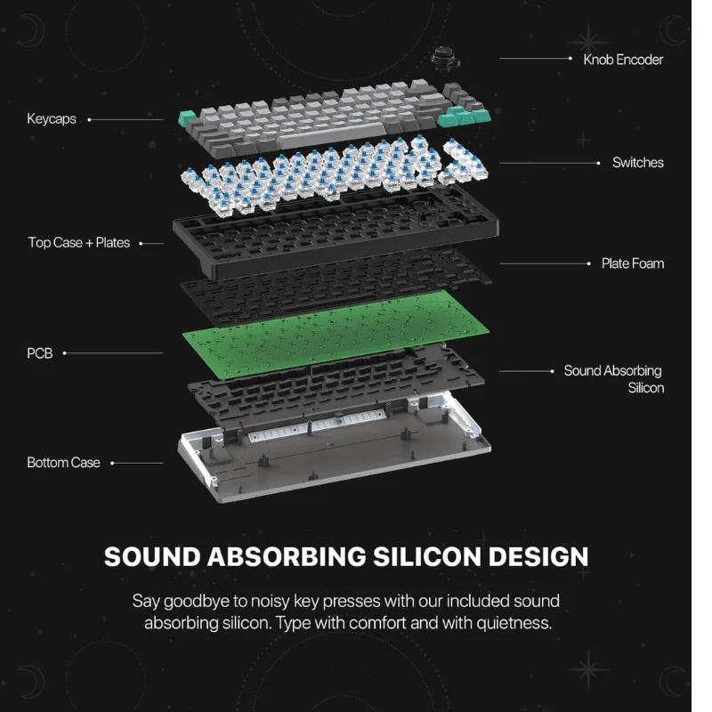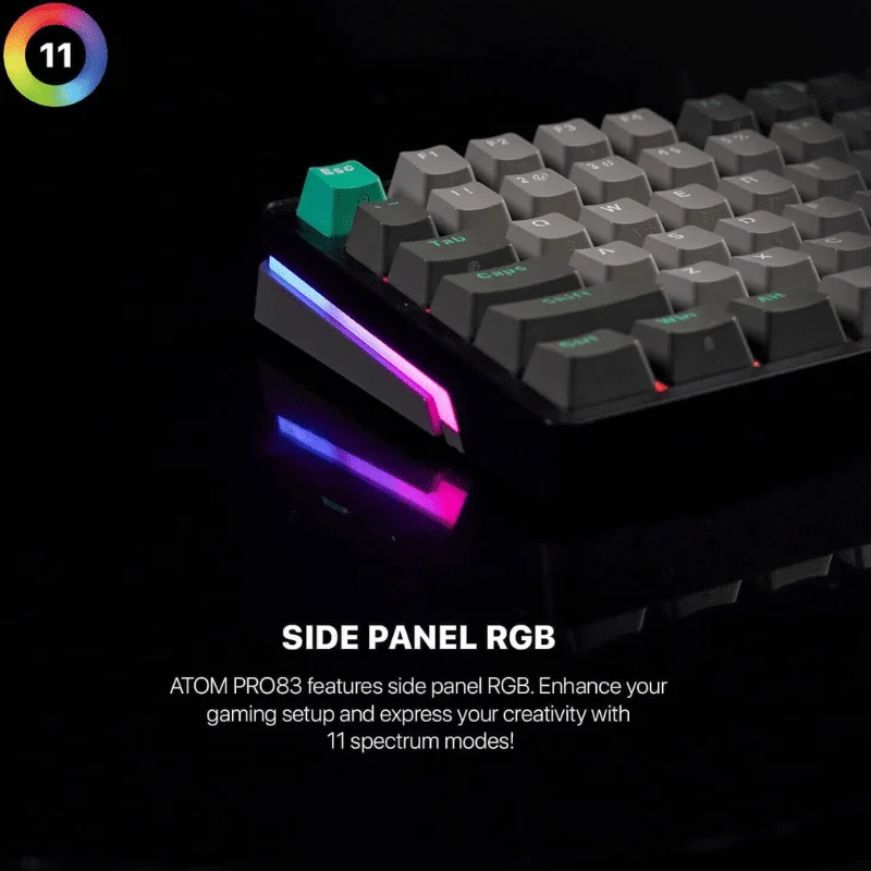 Designed with a sleek Saturn Grey finish and sturdy build, the ATOM PRO83 offers both durability and aesthetic appeal to complement any setup. Its compact layout ensures comfortable typing and saves valuable desk space, while the USB connection provides stable plug-and-play functionality without extra software.
