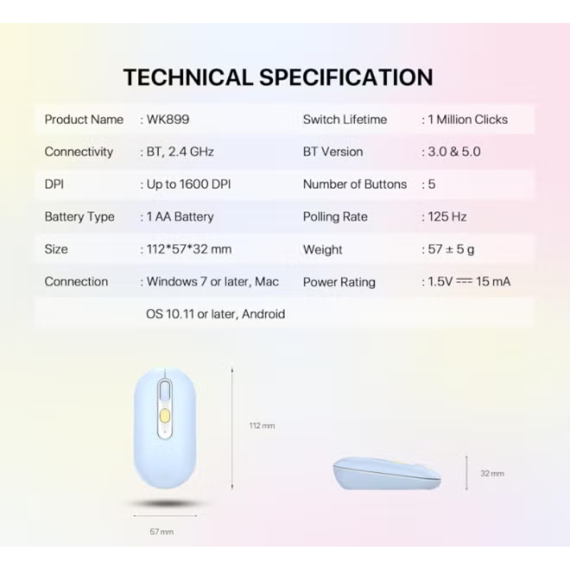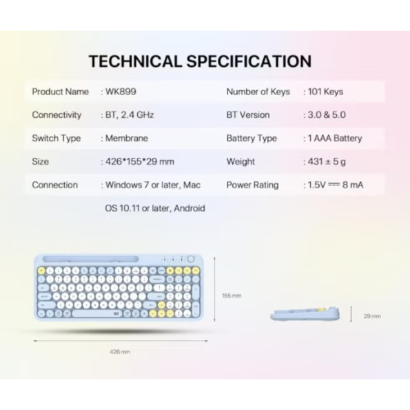The WK898 Combo MochI85 Wireless Keyboard & Mouse is a stylish and practical combo designed for users who want comfort, efficiency, and a clean wireless workspace. This set is perfect for office work, home use, studying, and everyday computing. With its modern design and stable wireless performance, it delivers smooth operation and reliable connectivity.
