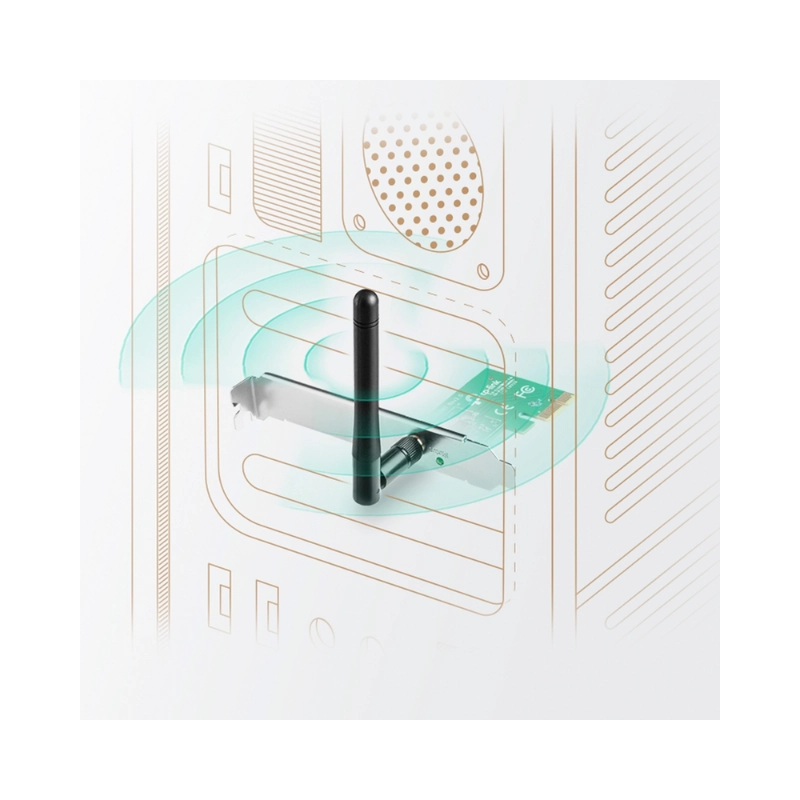 Built with an external adjustable antenna, the TL-WN781ND enhances wireless signal reception and improves coverage, giving your desktop stronger connectivity even through walls and across longer distances. Installation is straightforward: simply insert the card into an available PCI slot on your motherboard, attach the antenna, install the driver, and connect to your wireless network.